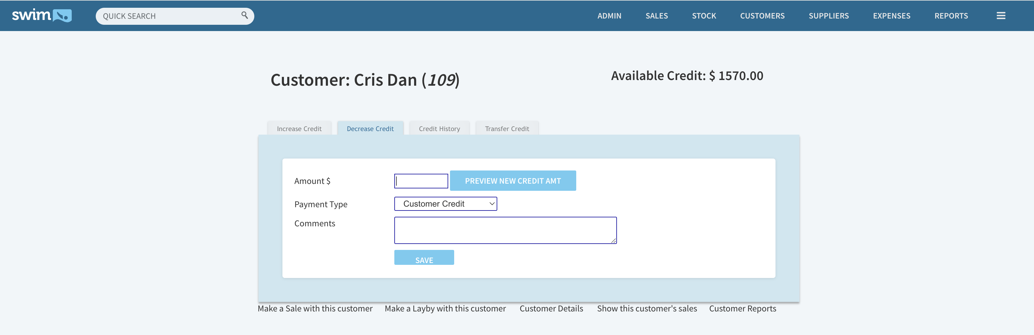 While on this screen, click ‘Decrease Credit’ and enter the amount of credit the customer is using.
